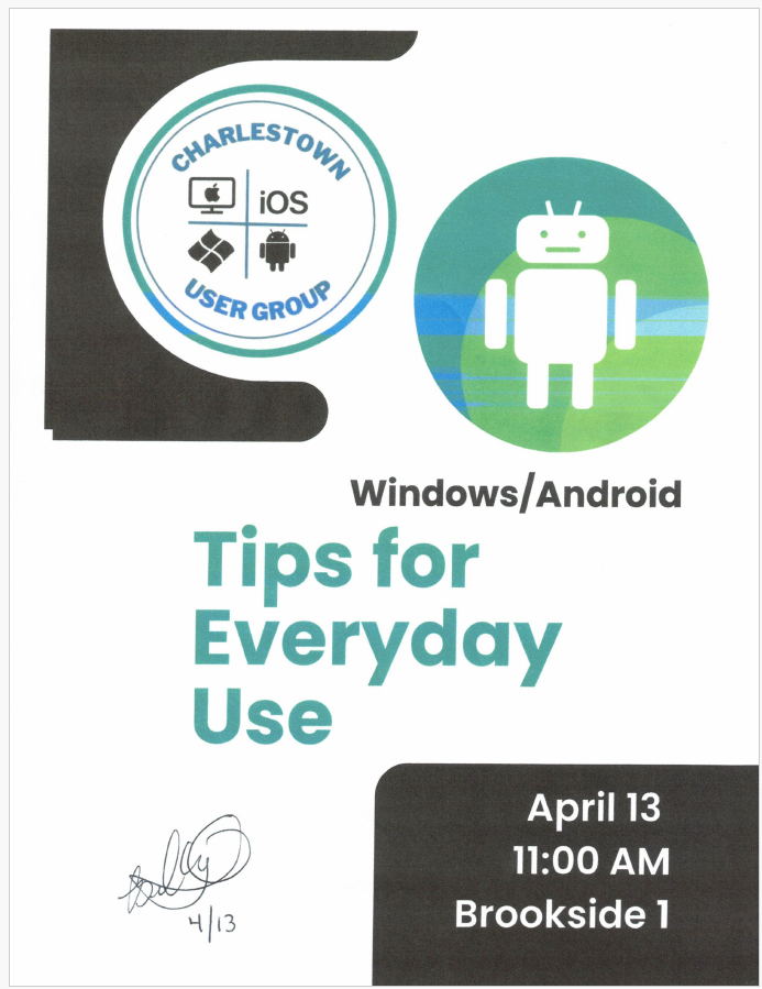 CHUG Meeting 2: April 2026 Apr 6, 2026 | CHUG TIPS FOR EVERYDAY USE Monday, April 13, 2026 : Windows/Android 11 AM Brookside Classroom 1